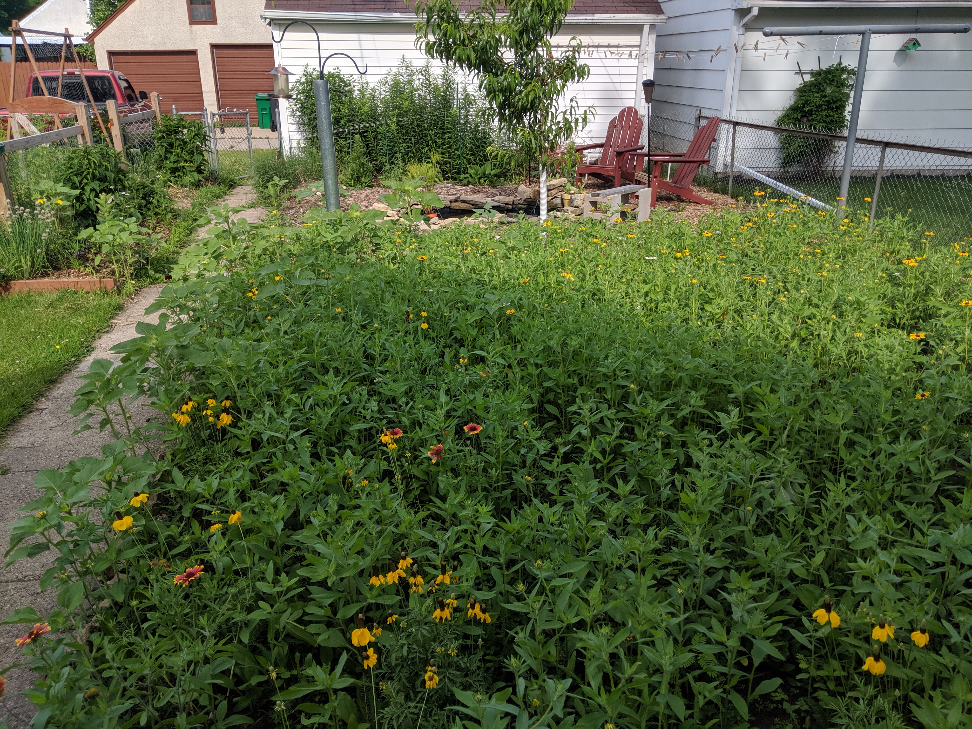 I still have lots of stuff on the agenda (filling in the front yard, increasing diversity, creating better bee nesting habitat, etc.), but here’s an achronological pictorial summation of the TinyHaus Prairie journey thus far.